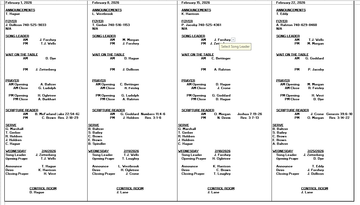 February Schedule 2026
